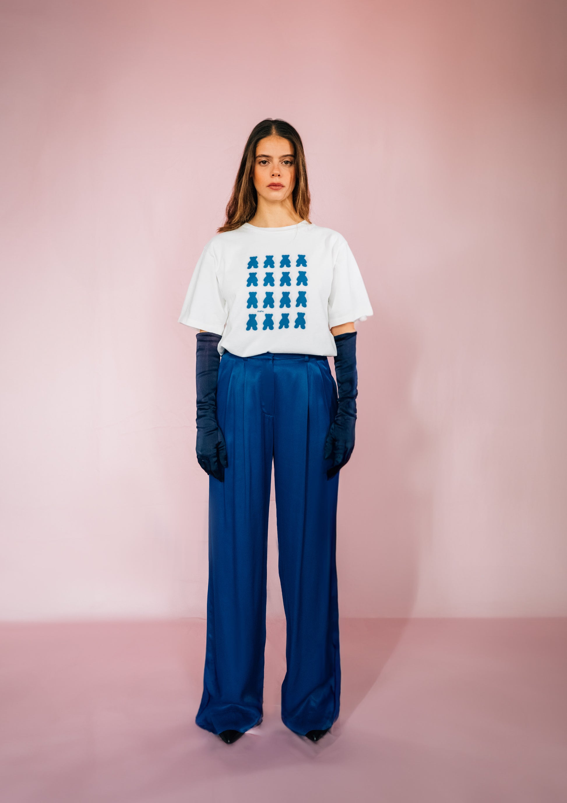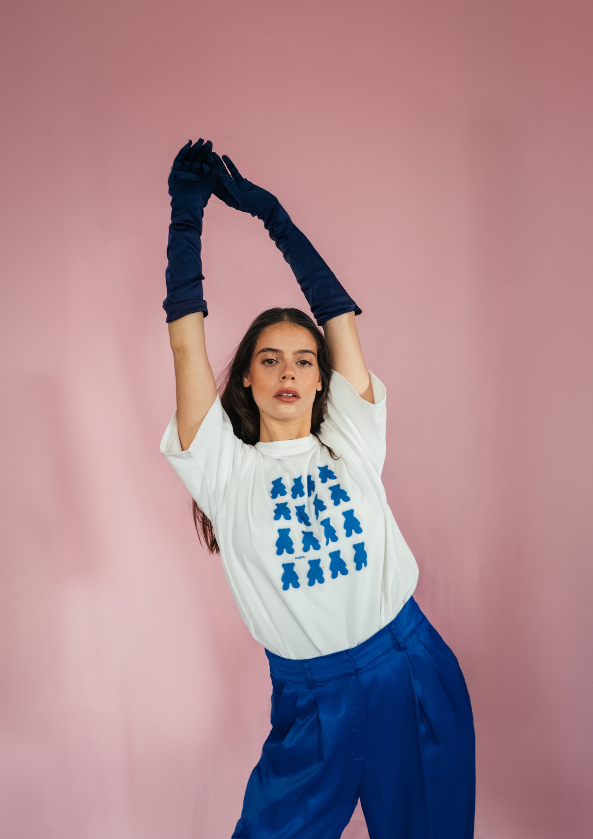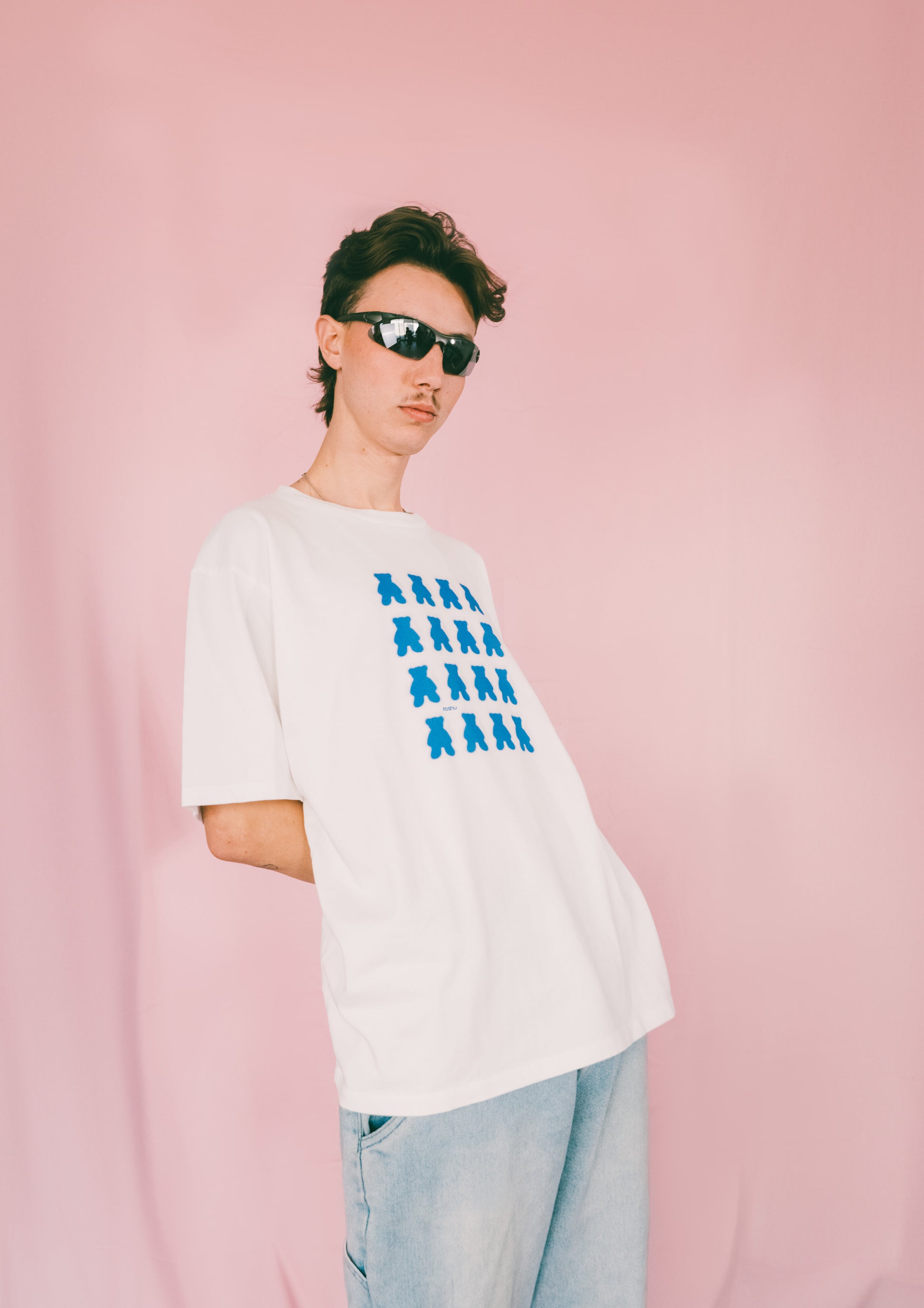 Special Edition blue teddy crew neck t-shirt cut to oversized fit.